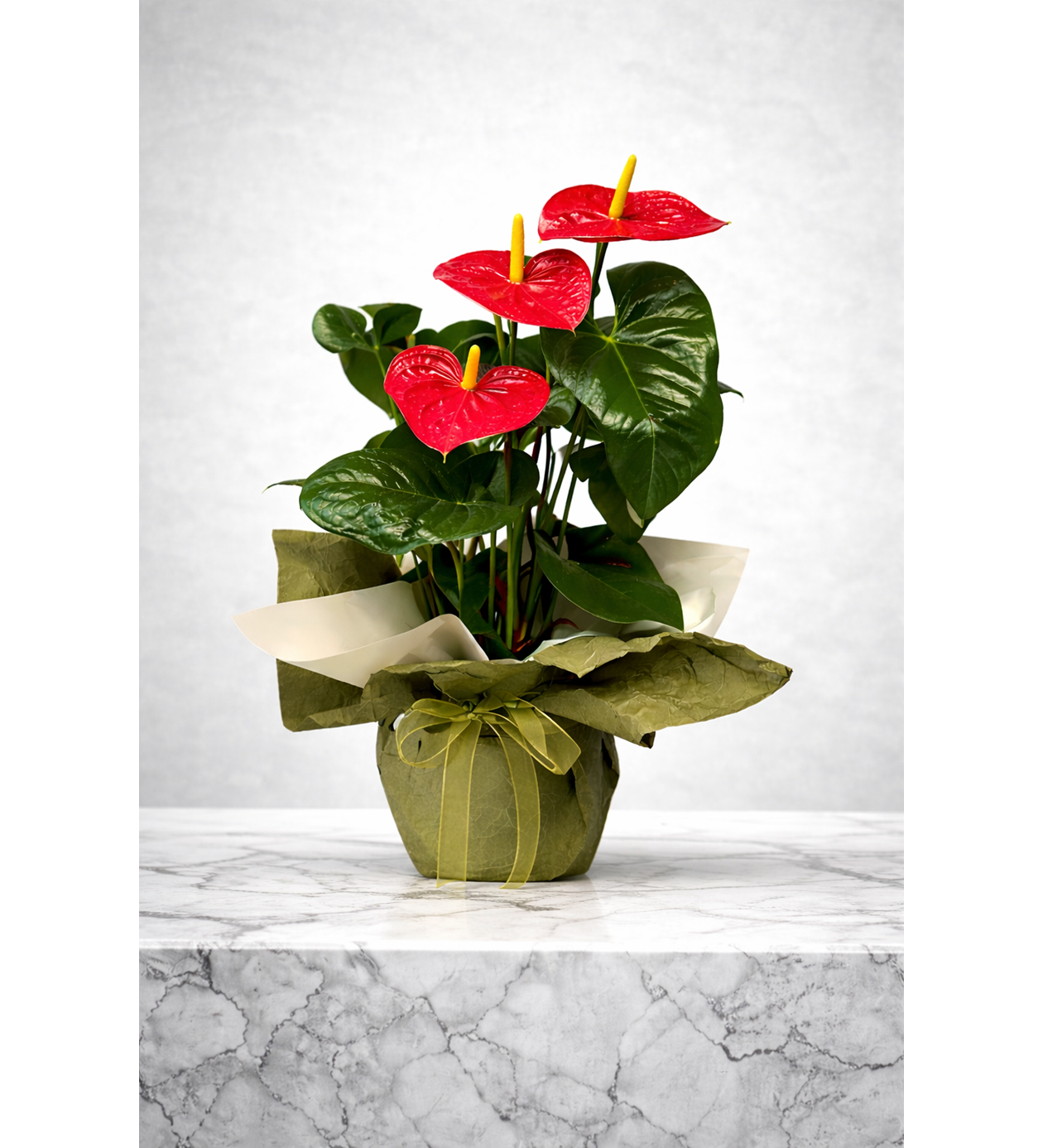 Canlı kırmızı çiçekleri ve parlak yeşil yapraklarıyla anthurium, bulunduğu ortama anında şıklık ve enerji katar. Kalp formundaki çiçekleriyle sevgi, zarafet ve kalıcılığı simgeleyen bu özel bitki; modern ve doğal detaylara sahip haki yeşili ambalajıyla estetik bir bütünlük sunar. Uzun ömürlü yapısı sayesinde doğru bakım koşullarında uzun süre canlılığını korur. Ev, ofis ve yaşam alanları için güçlü bir dekoratif dokunuş olmasının yanı sıra; özel günlerde anlamlı ve zarif bir hediye alternatifi olarak da öne çıkar. Doğallığı ve modern şıklığı bir araya getiren bu kırmızı anthurium ile sevdiklerinize kalıcı bir mutluluk hediye edebilir ya da yaşam alanlarınıza zarif bir dokunuş katabilirsiniz.